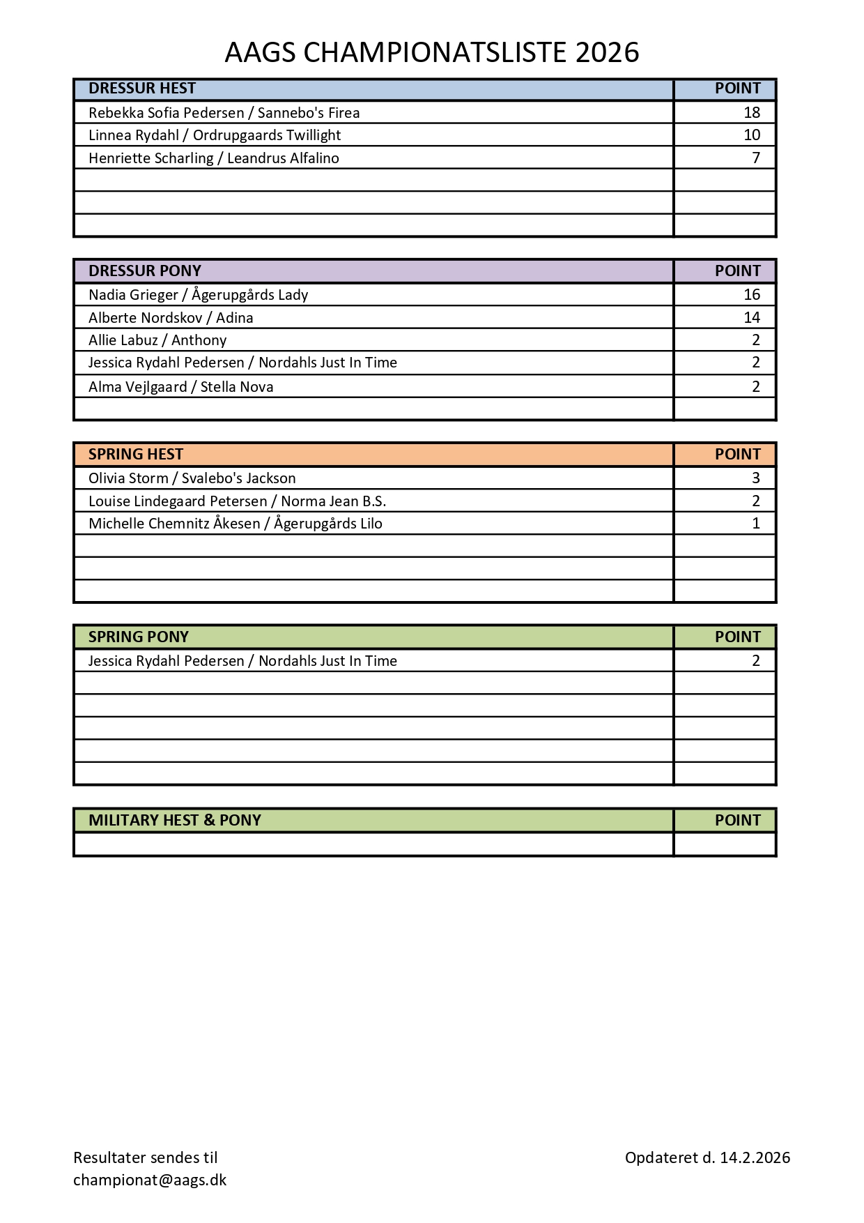 CHAMPIONATSLISTE 2026