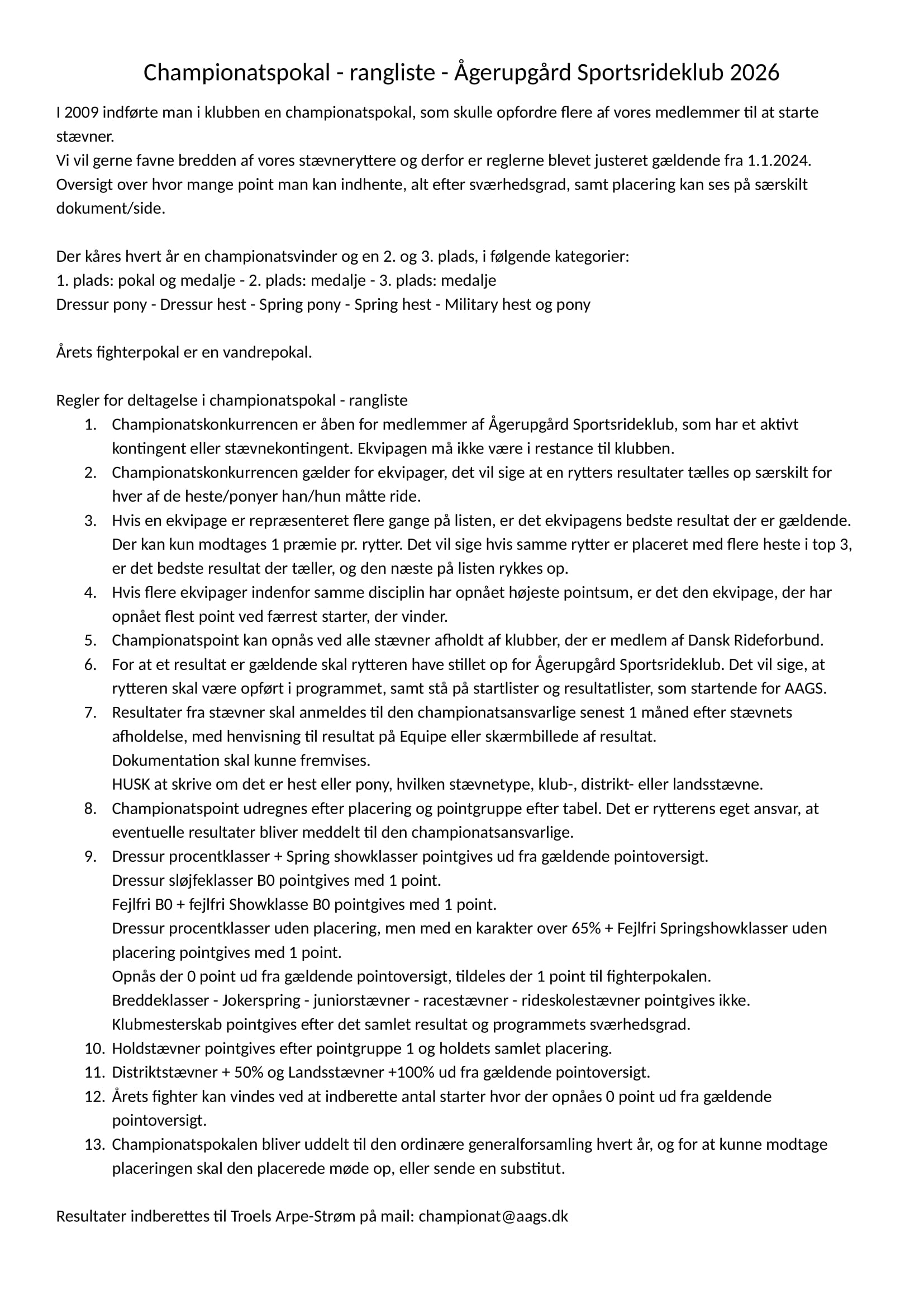Resultater indberettes til Troels Arpe-Strøm på mail